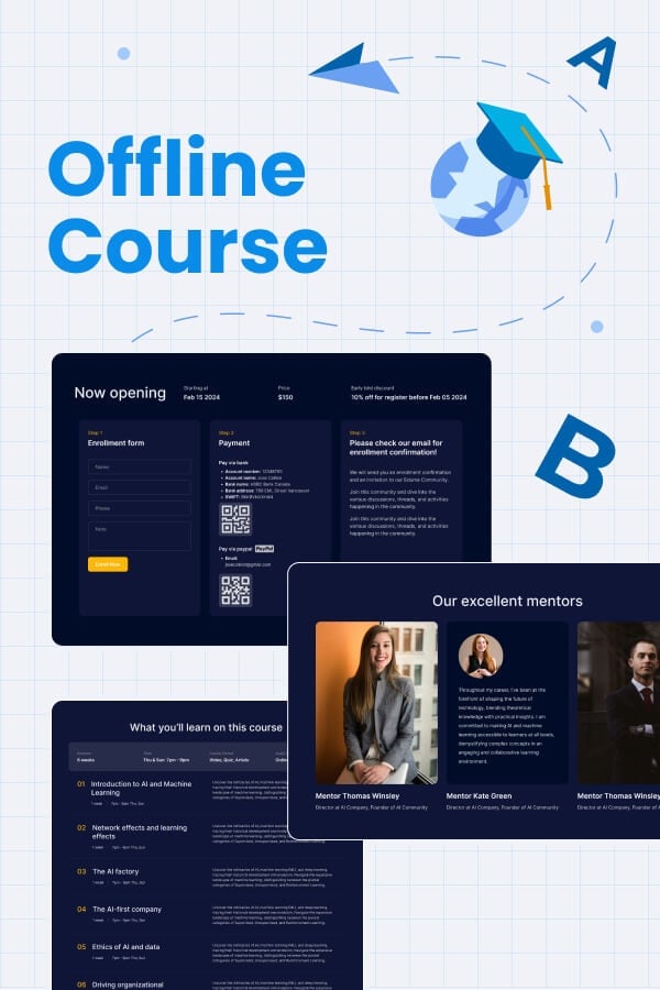 Landing page for offline courses